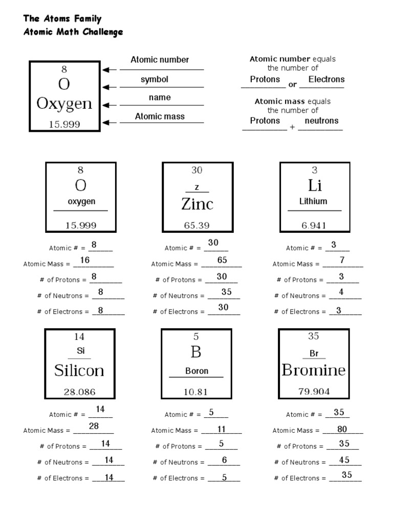 What type of charge does a neutron have. Atomic Math Challenge 8 O Oxygen 15999 Atomic number equals the number of _____ or _____ Atomic mass equals the number of _____ _____ 8 O _____ 15999 Atomic _____ Atomic Mass _____ of Protons _____ of Neutrons _____ of Electrons _____ 30 ___ Zinc 6539 Atomic _____ Atomic Mass _____ of Protons _____. Atoms family atomic math challenge worksheet with answerspdf.